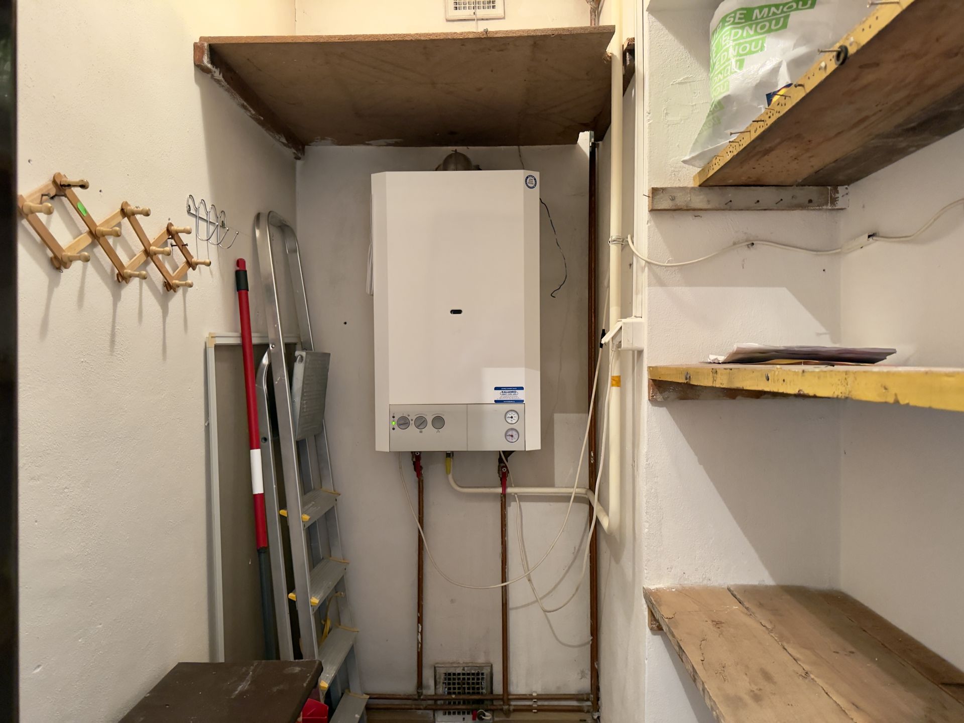 Plynový kotel zajišťuje vytápění celého bytu prostřednictvím radiátorů, ohřev vody je řešen elektrickým bojlerem. Podlahy v pokojích jsou původní parketové, v koupelně a na WC je dlažba, v kuchyni a na chodbě linoleum. Elektřina, rozvody vody a odpady jsou původní, rozvody topení a samotný plynový kotel jsou před několika lety měněny. Okna jsou plastová.