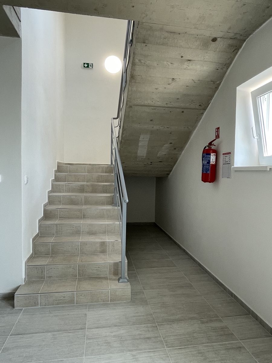 Byt o dispozici 1+kk o podlahové ploše 35 m2, se nachází v 1. nadzemním podlaží stavby bytového domu v Pohořelicích.