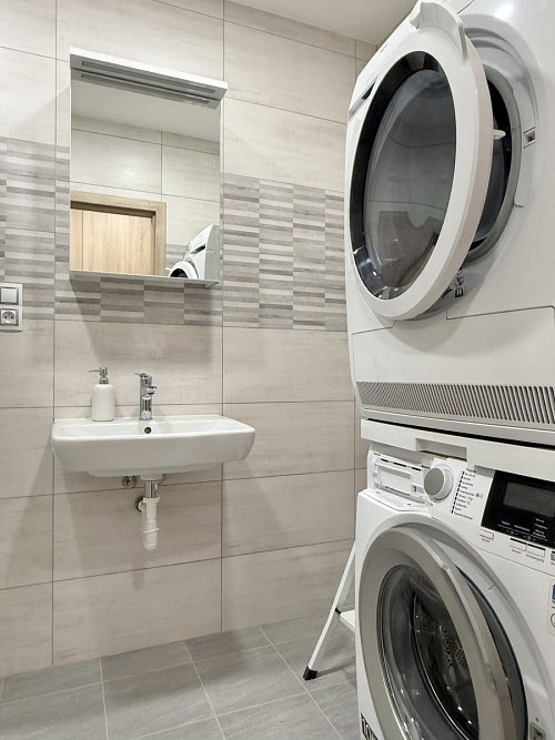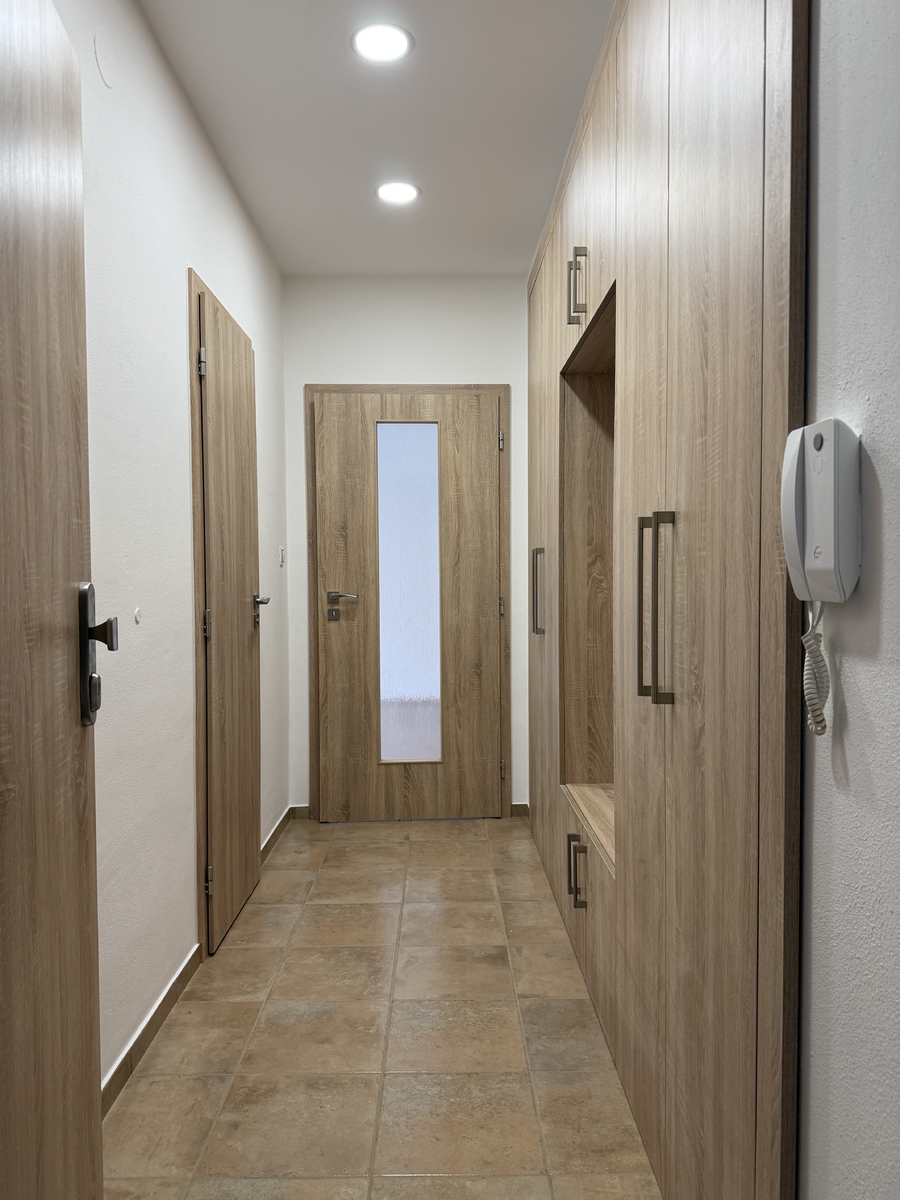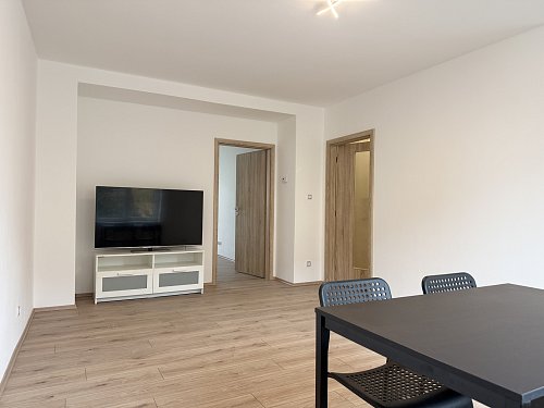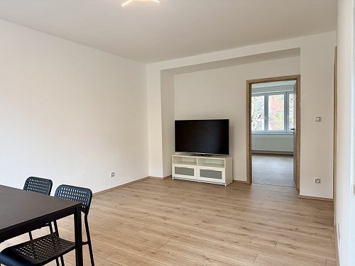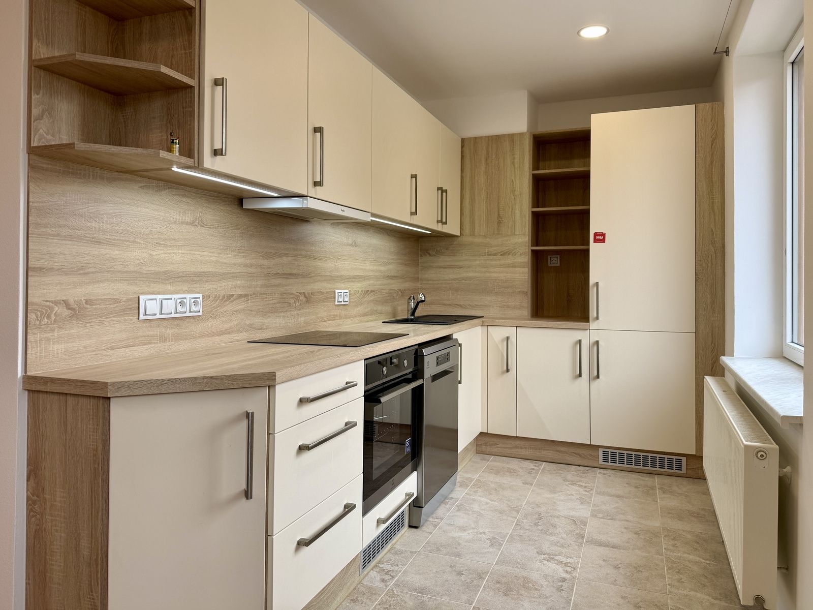 Byt prošel kompletní rekonstrukcí a součástí pronájmu je kuchyňská linka se spotřebiči, dále pračka, sušička a vestavěné skříně. O vytápění i ohřev vody se stará vlastní plynový kotel, což přináší komfort i možnost regulace spotřeby podle vlastních potřeb. Dispozici 2+kk s celkovou plochou 55 m2 tvoří obývací pokoj s kuchyní, samostatná ložnice, chodba, koupelna, toaleta a sklep.