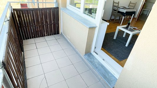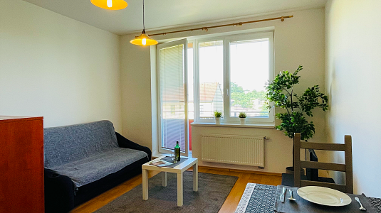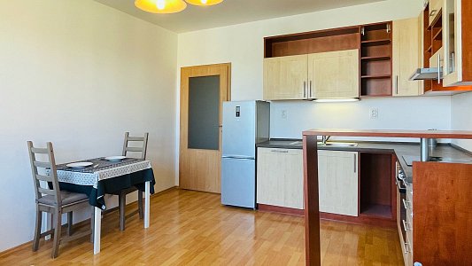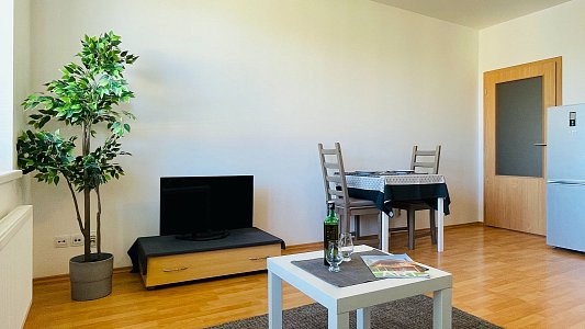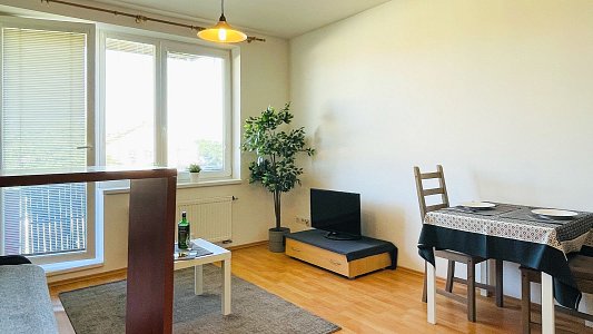 Tento prosvětlený a velmi příjemný byt je částečně vybaven, kuchyň se spotřebiči je kompletní včetně lednice a myčky, v pokoji můžete využít postel a šatní skříň.