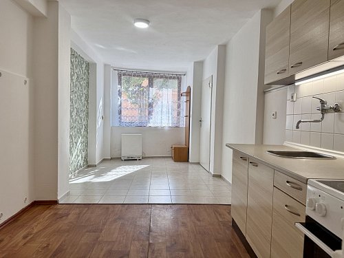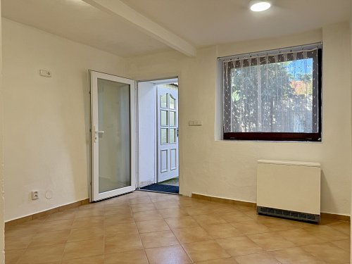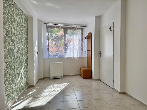 Byt o celkové ploše 38 m² se nachází v přízemí dvoupodlažního řadového rodinného domu.